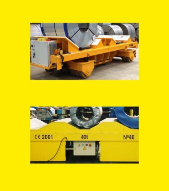 Heavy load transporters are mainly used to solve maneuverability problems in tight spaces. Due to all possible steering programs, on either one or different axles, with our steerable transfer carts you can achieve a really tight turn radius. The propulsion of our vehicles can be either battery powered (for in-plant load transports) or diesel (for long distances). A transfer cart will improve material handling when moving heavy equipment.
